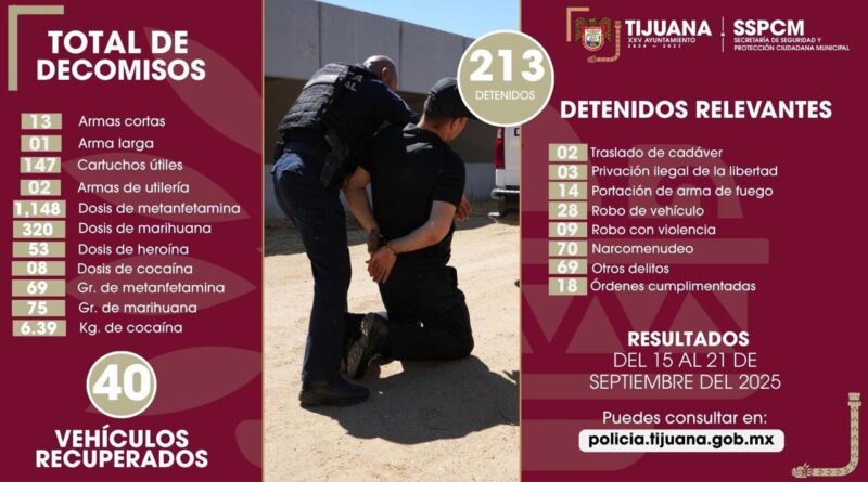 Leer másTijuana, Baja California a 23 de septiembre de 2025. La Secretaría de Seguridad y Protección Ciudadana Municipal de Tijuana (SSPCM)