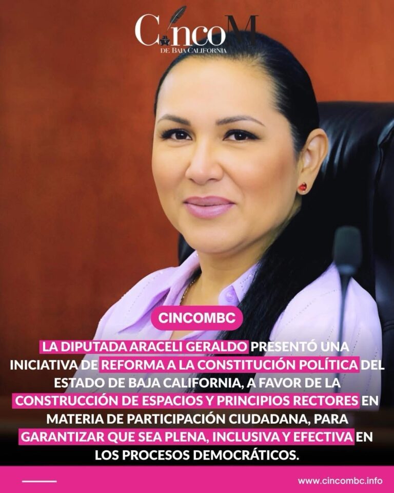 Finalmente, la diputada Araceli Geraldo expresó su confianza en que el Congreso aprobará esta propuesta, al considerar que se trata de una reforma que coloca a la ciudadanía en el centro de la vida pública y contribuye a la construcción de una democracia más cercana, justa y sensible a la diversidad de Baja California.