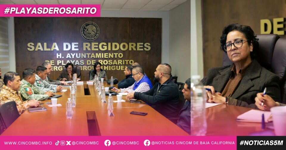 Playas de Rosarito, B.C., a 12 de diciembre de 2025.- Con el objetivo de seguir reforzando las estrategias de seguridad y garantizar la tranquilidad de las familias rosaritenses, la presidenta municipal, Rocío Adame, encabezó la Mesa de Seguridad de Playas de Rosarito, en la que se revisaron los avances operativos de las últimas horas y los esfuerzos conjuntos de las corporaciones que actúan en el municipio.