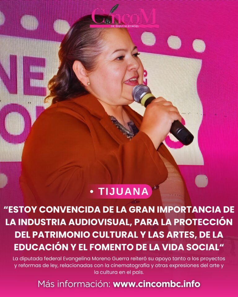La diputada federal Evangelina Moreno Guerra, quien recientemente asistió como invitada a la función inaugural del «Festival Cine Sin Fronteras 2025» en Tijuana, reiteró su apoyo tanto a los proyectos y reformas de ley, relacionadas con la cinematografía y otras expresiones del arte y la cultura en el país.