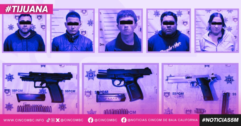 Aprehende Policía Municipal de Tijuana a cinco personas en posesión de armas de fuego