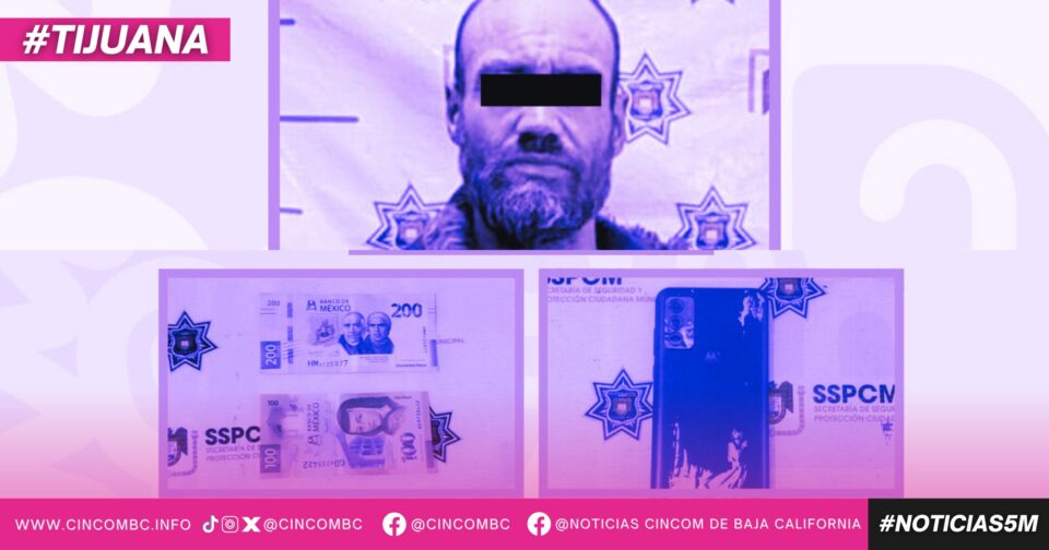 Tijuana, Baja California, a 7 de febrero de 2026. La Policía Municipal de Tijuana detuvo a un hombre presuntamente responsable de un asalto con violencia, luego de despojar a un ciudadano de sus pertenencias mediante amenazas con arma blanca en la colonia La Mesa.