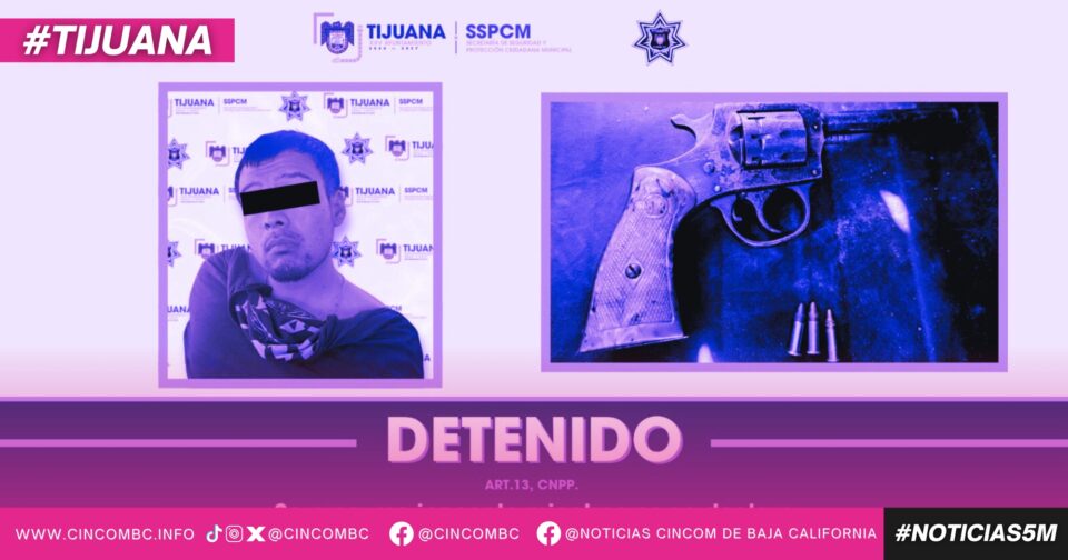 Tijuana, Baja California, a 26 de febrero de 2026. Como parte de las acciones preventivas que lleva a cabo la Secretaría de Seguridad y Protección Ciudadana Municipal (SSPCM), se logró la detención del presunto responsable del delito de robo de vehículo y portación de arma de fuego.