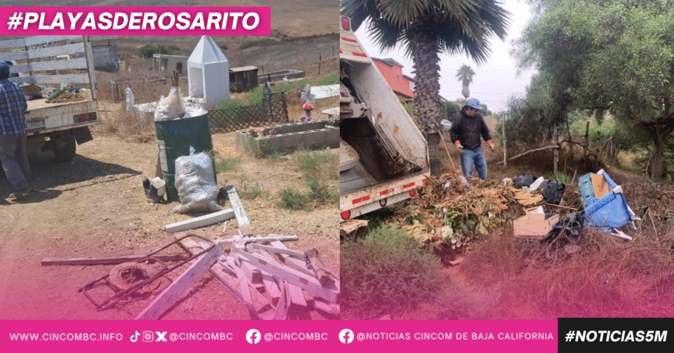 Playas de Rosarito, Baja California, 15 de agosto de 2025.– En seguimiento a la visión de la presidenta municipal, Mtra. Rocio Adame, de mantener un municipio limpio, ordenado y con espacios públicos dignos para todas las familias, el Ayuntamiento de Playas de Rosarito, a través de la Delegación de Primo Tapia y en coordinación con la Dirección de Servicios Urbanos (DSU), llevó a cabo una amplia jornada de recolección de basura pesada en distintas zonas de la delegación.