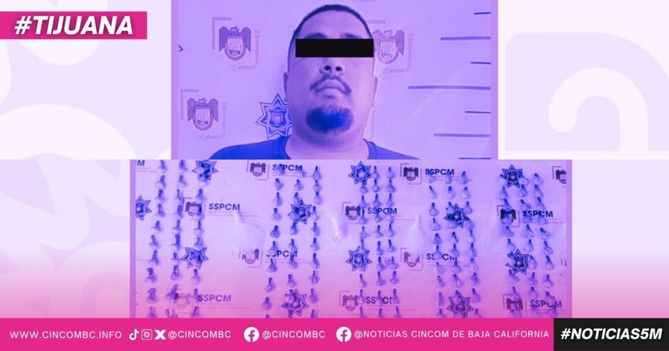 Tijuana, Baja California, a 17 de marzo de 2026. La Secretaría de Seguridad y Protección Ciudadana Municipal (SSPCM) informa sobre la detención de una persona en posesión de 150 dosis de una sustancia con características de la droga conocida como cristal, en la colonia Baja Maq El Águila.