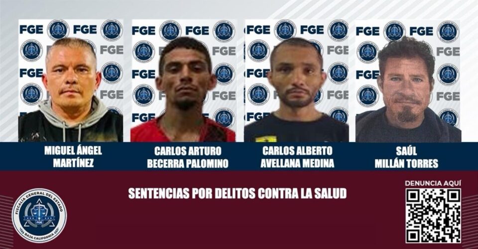 TIJUANA, BAJA CALIFORNIA A 30 DE AGOSTO DE 2024.- En cuatro diferentes asuntos, igual número de imputados recibieron sentencia por su responsabilidad en delitos contra la salud, de acuerdo a la Fiscalía Especializada en Narcomenudeo.
