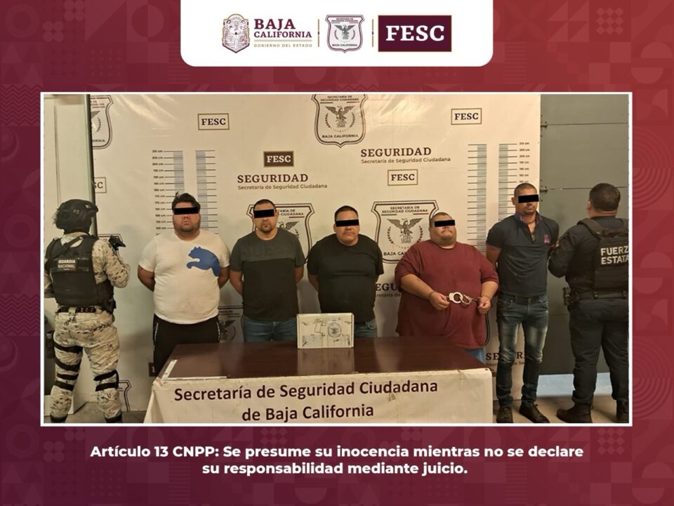 TIJUANA.- Agentes de la Fuerza Estatal de Seguridad Ciudadana (FESC) adscritos a la Secretaría de Seguridad Ciudadana de Baja California (SSCBC) en conjunto con elementos de la Secretaría de la Defensa Nacional (SEDENA), llevaron a cabo la detención de cinco hombres que se encontraban en posesión de un arma de fuego corta y 30 cartuchos útiles; el incidente se registró en las inmediaciones de la colonia Baja Maq El Águila en la ciudad de Tijuana.