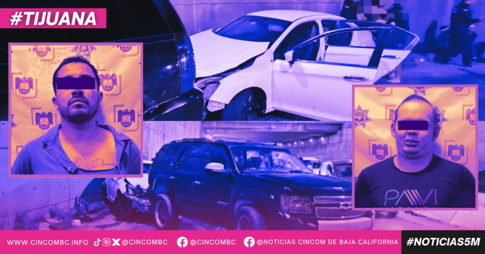 Tijuana, Baja California, a 7 de julio de 2025.- Derivado de una disputa originada por un incidente de tránsito, agentes de la Policía Municipal detuvieron a dos personas involucradas en una riña y daños a vehículos sobre el Libramiento Sur, a la altura de la colonia Durango.