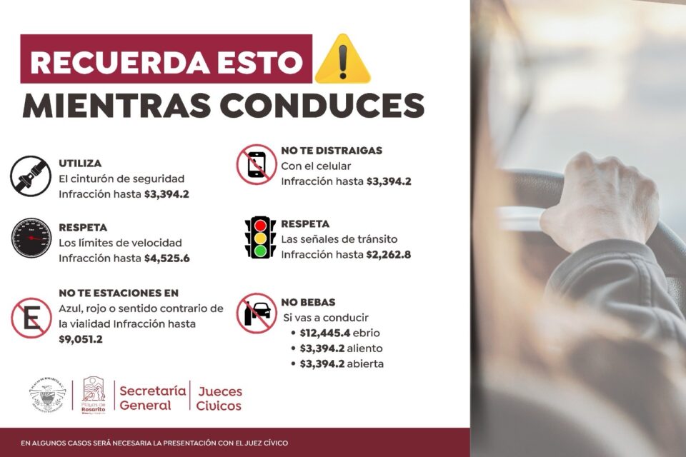 El secretario General especificó que existen normas universales cuyo incumplimiento es motivo de infracción, tales como: no usar el cinturón de seguridad, manejar en estado de ebriedad, transitar sin licencia, conducir utilizando el teléfono celular y exceder los límites de velocidad. Por ello, se hace un llamado a la población a apegarse estrictamente al reglamento de tránsito.