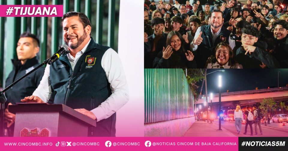 Tijuana, Baja California, a 17 de octubre de 2025. Con el objetivo de garantizar trayectos seguros e iluminados para el tránsito de las y los tijuanenses, el presidente municipal, Ismael Burgueño Ruiz, dio inicio al programa ‘Sendero Seguro’, con la inauguración del primero en la Vía Rápida Poniente, entre el CONALEP Plantel Tijuana II y el COBACH Rubén Vizcaino Valencia, en la colonia Los Santos.