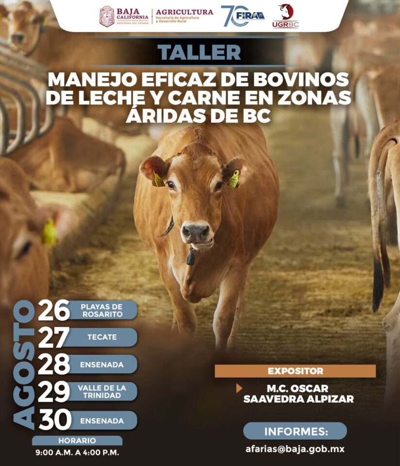 INVITA SADERBC A TALLER SOBRE MANEJO EFICAZ DE BOVINOS LECHE Y CARNE EN ZONAS ÁRIDAS DE BAJA CALIFORNIA