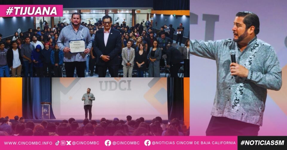 Tijuana, Baja California, a 24 de octubre de 2025. El presidente municipal, Ismael Burgueño Ruiz, visitó la Universidad de las Californias Internacional (UDCI), donde dialogó con estudiantes y directivos sobre los avances alcanzados en su administración, así como los programas impulsados para fortalecer la participación de la juventud en el desarrollo de la ciudad.