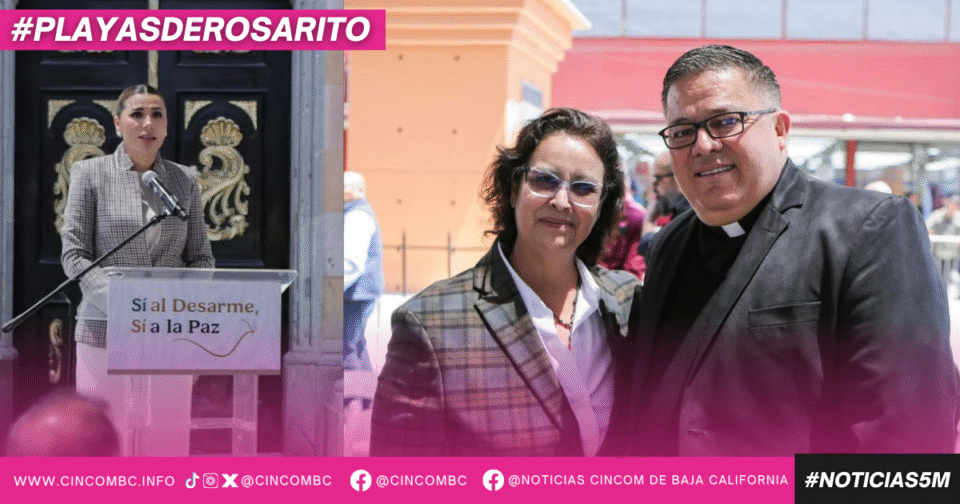 Tijuana, B.C., 23 de abril de 2025.- La presidenta municipal de Playas de Rosarito, Mtra. Rocio Adame Muñoz, participó activamente en el inicio de la campaña de desarme voluntario “Sí al desarme, Sí a la Paz”, evento que se llevó a cabo en la ciudad de Tijuana.