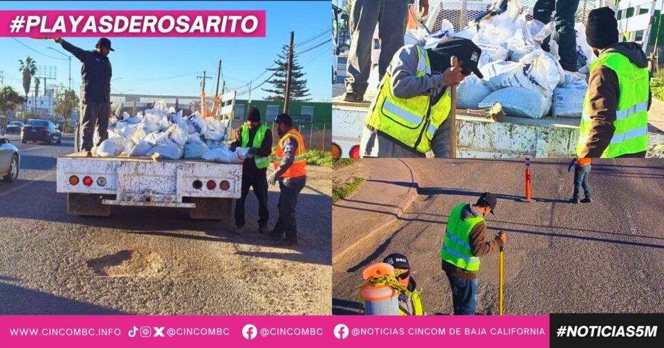 El 10° Ayuntamiento de Playas de Rosarito informa a la ciudadanía que se han iniciado trabajos de bacheo preventivo con asfalto frío en diversas vialidades del municipio, como una medida emergente ante las lluvias recientes que han provocado afectaciones en las calles.