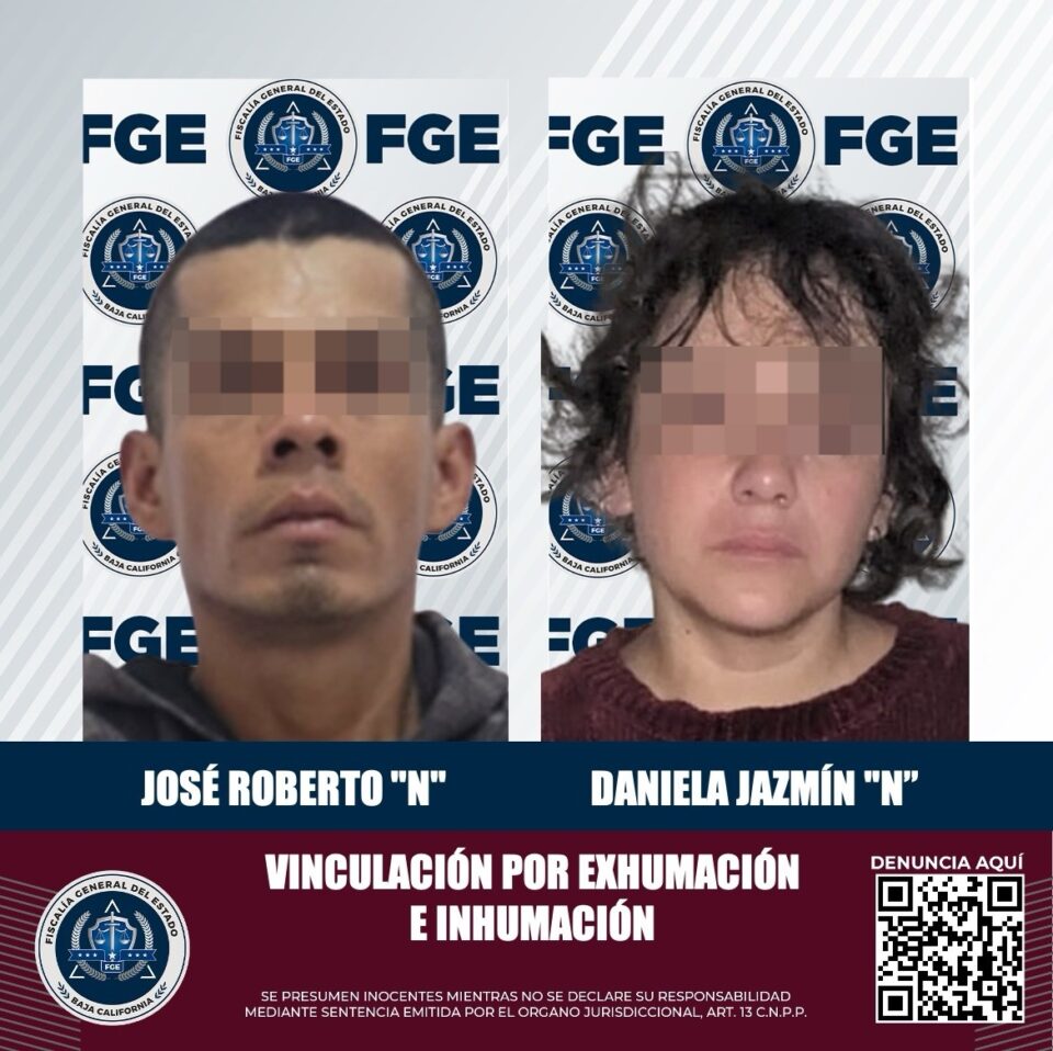 TIJUANA, BAJA CALIFORNIA, A 30 DE AGOSTO DE 2024.- Por su presunta responsabilidad en el delito de inhumación y exhumación, en su modalidad de traslado de cadáver, en relación a hechos ocurridos este mes de agosto, una mujer y un hombre fueron vinculados a proceso y permanecerán en prisión preventiva, informa la Fiscalía General del Estado.