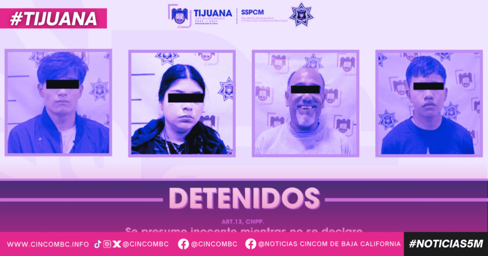 Tijuana, Baja California, a 17 de agosto de 2025.- La Secretaría de Seguridad y Protección Ciudadana Municipal (SSPCM), aseguró a cuatro personas en la colonia Libertad el pasado sábado 16 de agosto.