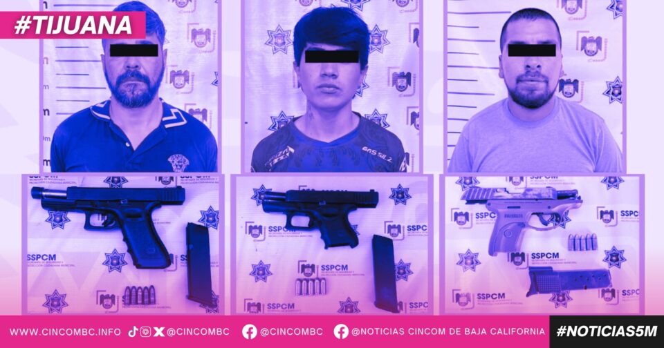 Asegura Policía Municipal de Tijuana a tres personas en posesión de armas de fuego