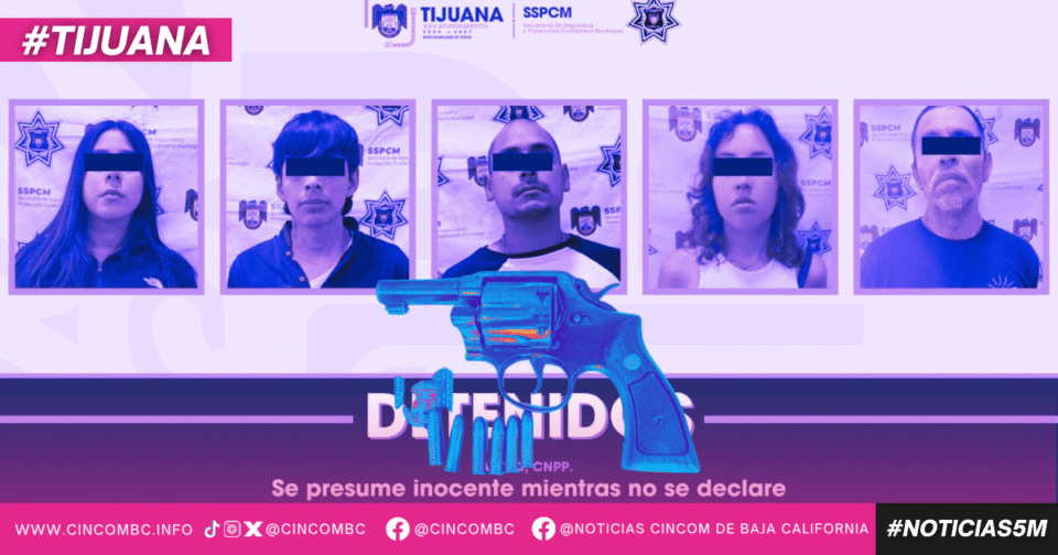 Tijuana, B. C., a 20 de mayo de 2025. Como resultado de un patrullaje preventivo en la colonia Soler, elementos de la Policía Municipal de Tijuana lograron la detención de cinco personas, entre ellas un sujeto armado con orden de aprehensión activa por narcomenudeo, así como la recuperación de un vehículo con predenuncia de robo.